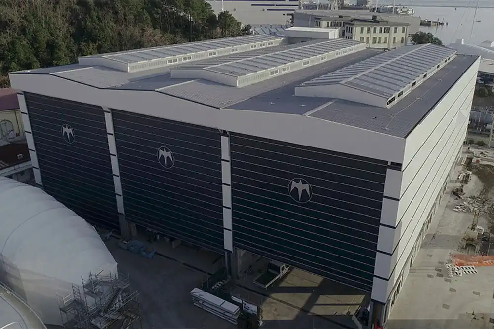 Lo storico marchio di imbarcazioni di lusso ha deciso, nel 2012, di costruire una nuova struttura che permettesse di realizzare imbarcazioni fino a 65 m di lunghezza, lavorando in sicurezza e con la massima efficienza.